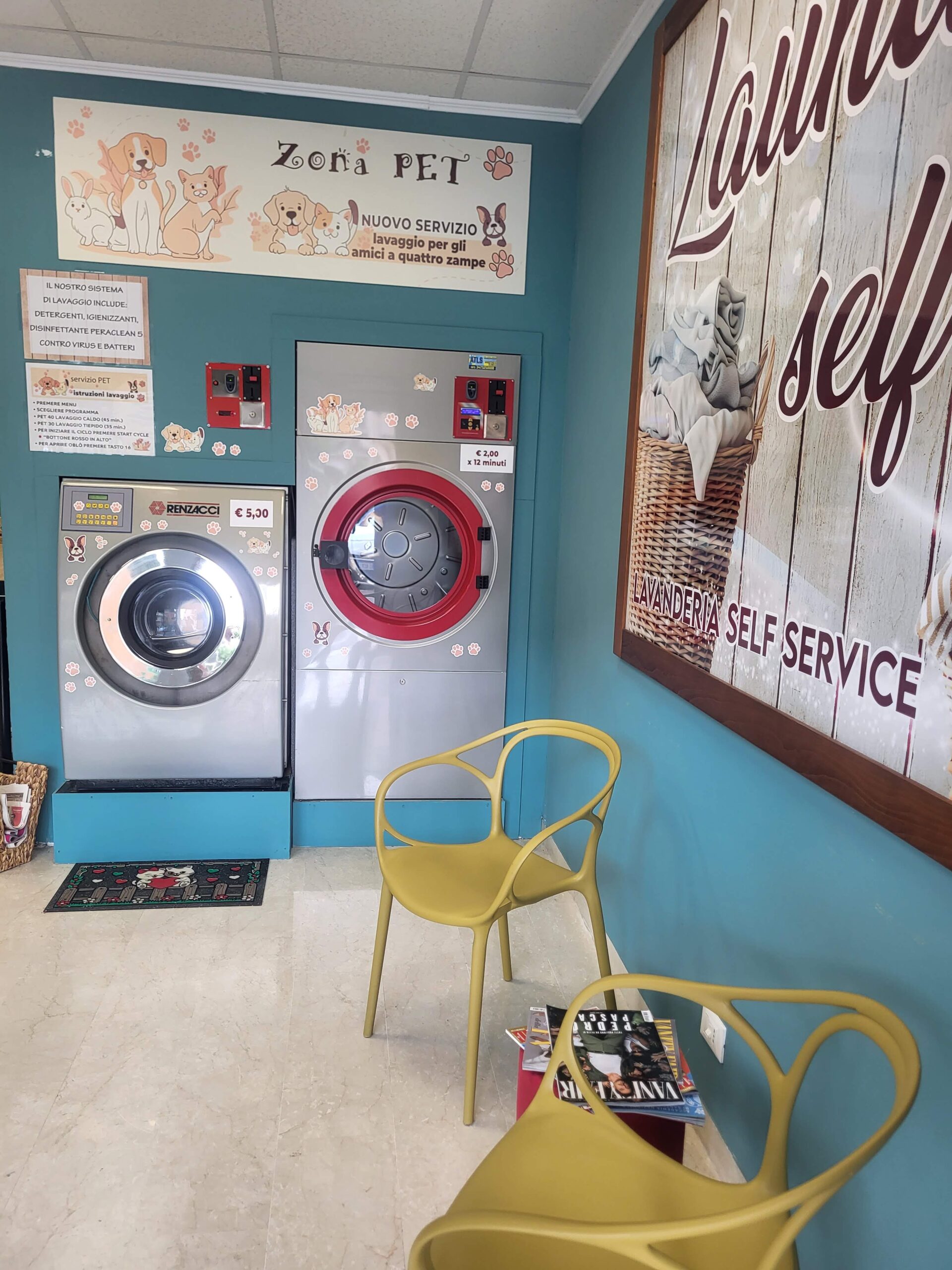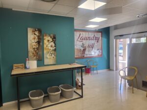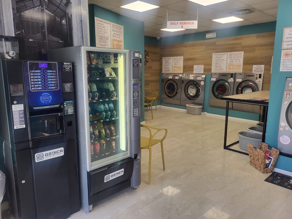 Un ambiente accessibile per tutti i clienti, che garantisce comfort e facilità d’uso nelle operazioni di lavanderia.